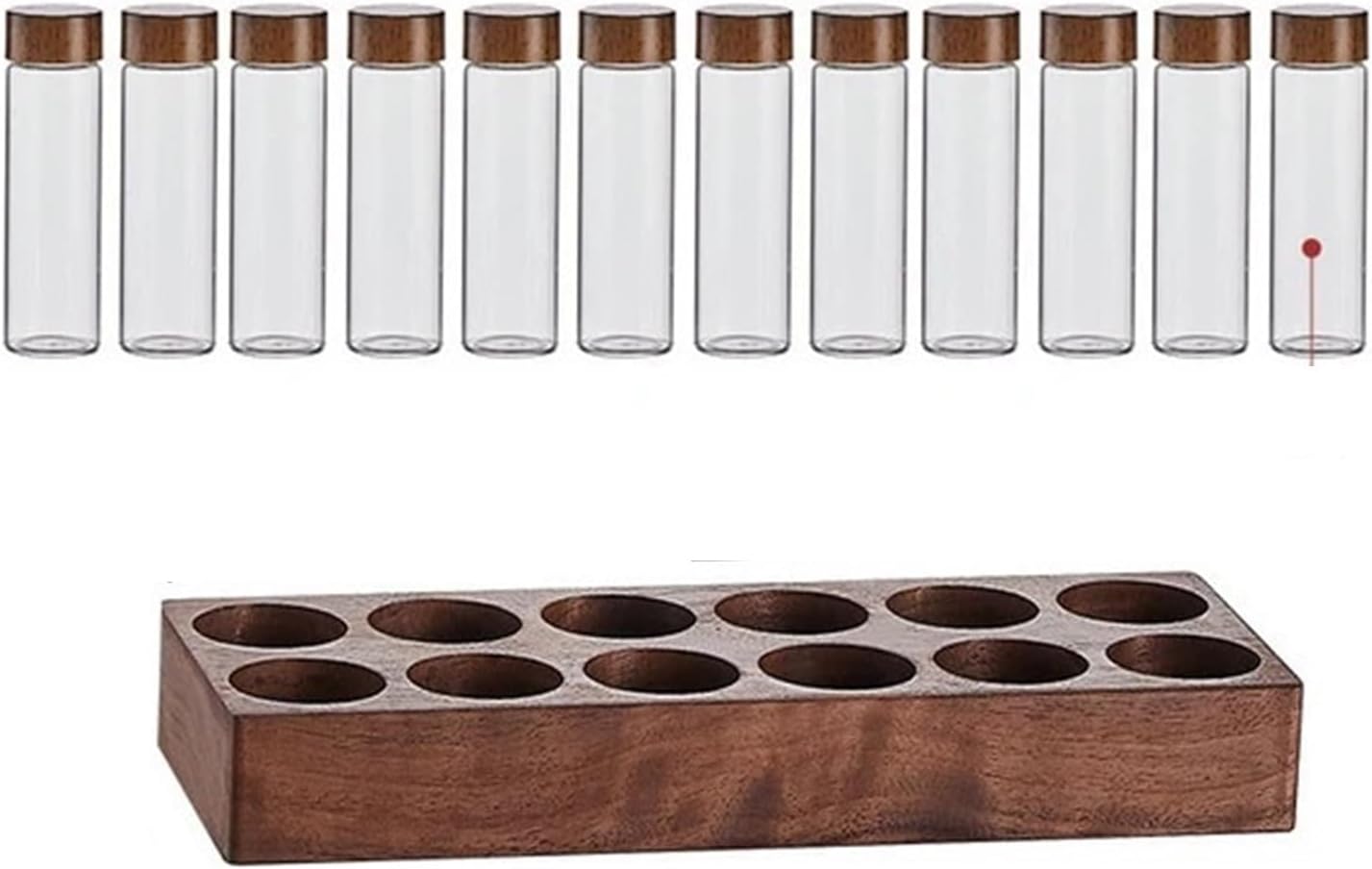 =========Chemicals of Very High Concern: NoneMaterial: walnutModel: KH-001Kit type: Two-piece setProduct name: coffee bean storageMaterial: walnut base glass jar ABS LIdSpecifications: 6 holes or 12 holesGlass jar specifications: 17g or 22gUsed for: coffee beans, tea, cereals, cereals, spices