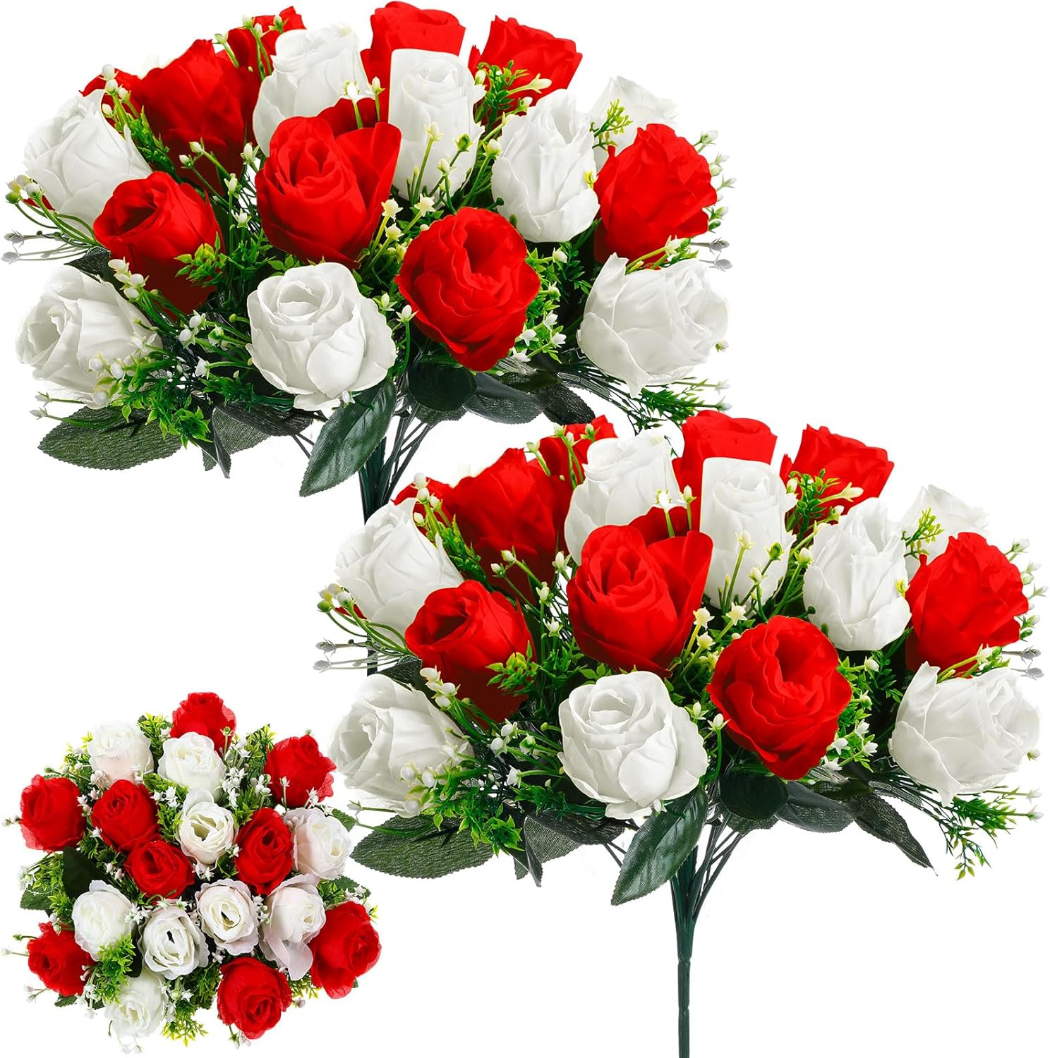 Features: These cemetery flowers for graves can be served as proper sympathy gift, cemetery decorations for grave, gravestone decorations for cemetery and so on. To add some colors to the gravestone of your loved ones. Let the beautiful flowers accompany them. These artificial cemetery flowers are easy to use, you can install them in a grave vase (not included), and match them with other flowers, to create a beautiful decoration. Specifications: Material: silk cloth, LDPE plastic and wire Color: purple, dark purple Size: Each bouquet: about 14.57 x 11.81 inches/ 37 x 30 cm Each flower head: about 1.77 inches/ 4.5 cm in diameter Package includes: 2 x Gravesite flowers Notes: Manual measurement, please allow slight errors on size. The color may exist a slight difference due to different screen displays